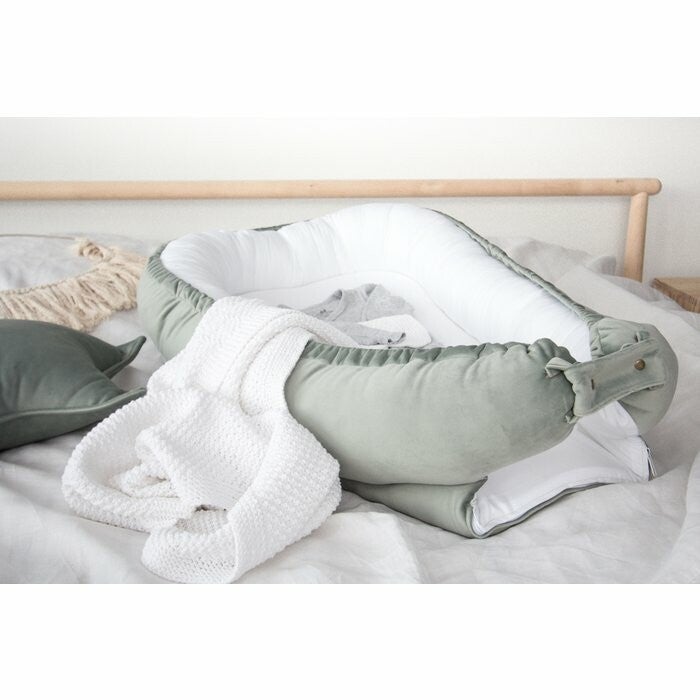 De babycocoon is een van de meest veelzijdige en handige accessoires voor baby's. We kunnen het gebruiken in het babybedje, het ouderlijk bed, de bank, maar ook in de tuin of op het terras bij warm weer. Het garandeert comfort en veiligheid voor de baby dankzij de schuimmatras. Het kind kan zijn beentjes vrij neerleggen.