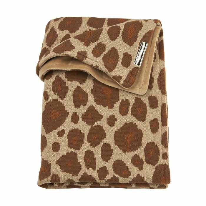 De Meyco Panter babydeken met velvet is een gebreide babydeken en heerlijk zacht en comfortabel. De deken bestaat uit twee lagen. De gebreide voorzijde is van 100% katoen met een fashion leopard print. De achterzijde is van velvet van 80% katoen en 20% polyester. Door de dubbele laag houdt de deken je kindje goed op temperatuur in het voor/najaar en de winter. Met de complete Meyco panter collectie verander je je babykamer in no time naar een hip en trendy kamertje.