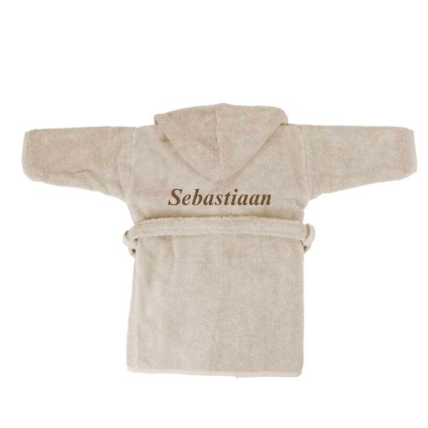 Met deze badjas blijft je kindje lekker warm als het net uit bad komt. Ook ideaal voor op het strand of bij de zwemles. De capuchon is lekker ruim en de stof heerlijk zacht. De badjas is te personaliseren met geborduurde naam.