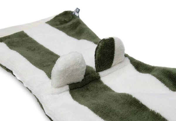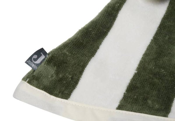 De gestreepte washand is verkrijgbaar in 2 kleuren: Biscuit en Leaf Green.