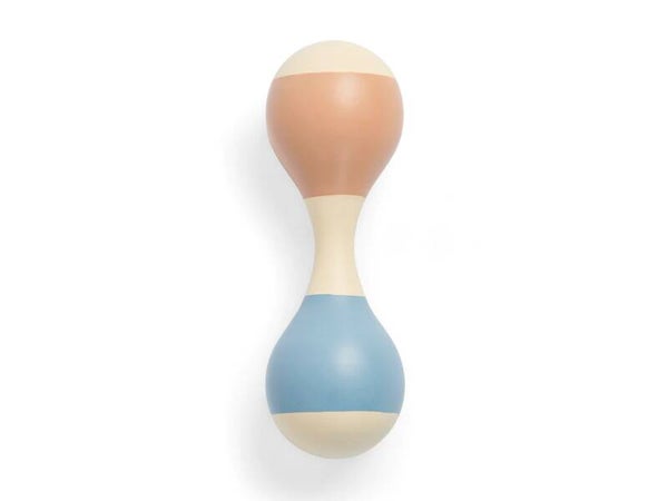 Deze maraca hoort echt thuis is de speelgoeduitzet van je baby! De slimme ergonomische vorm zorgt ervoor dat je baby de rammelaar al heel snel kan vastpakken. Het is ideaal oefenmateriaal om te leren grijpen. Aanraking en vastpakken wordt beloond met het geluid dat uit de sambal komt. De lichte kleuren en mooie ronde vormen zijn helemaal babyvriendelijk.