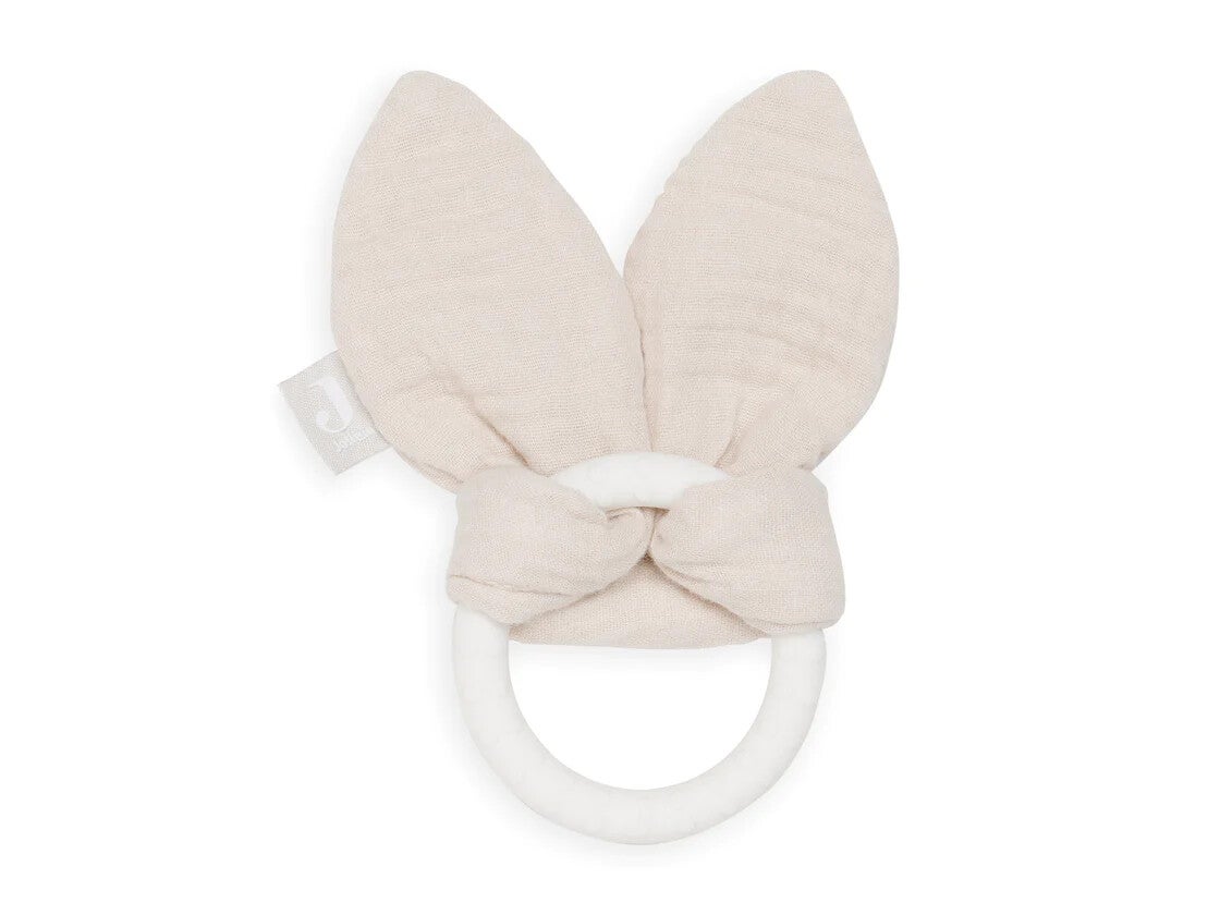 Deze bijtring met oortjes van hydrofiel is verkrijgbaar in vier verschillende kleurtjes. Nougat, chestnut, roze en grijs. Voor je baby is elke vorm makkelijk te grijpen en vast te houden. Doorkomende tandjes kunnen er voor zorgen dat je baby zich minder lekker voelt. Ook niet zo gek natuurlijk: de tand wurmt zich een weg door het tandvlees en dat doet zeer of het geeft jeuk. Vaak zie je het ook wel in het mondje: een harde bobbel en rood of gezwollen tandvlees. Het is hard werken voor jouw baby! Om de pijn iets te verzachten is het voor jouw kleintje fijn om ergens op te bijten. Dat verlicht de druk op het tandvlees bij de doorkomende tandjes.